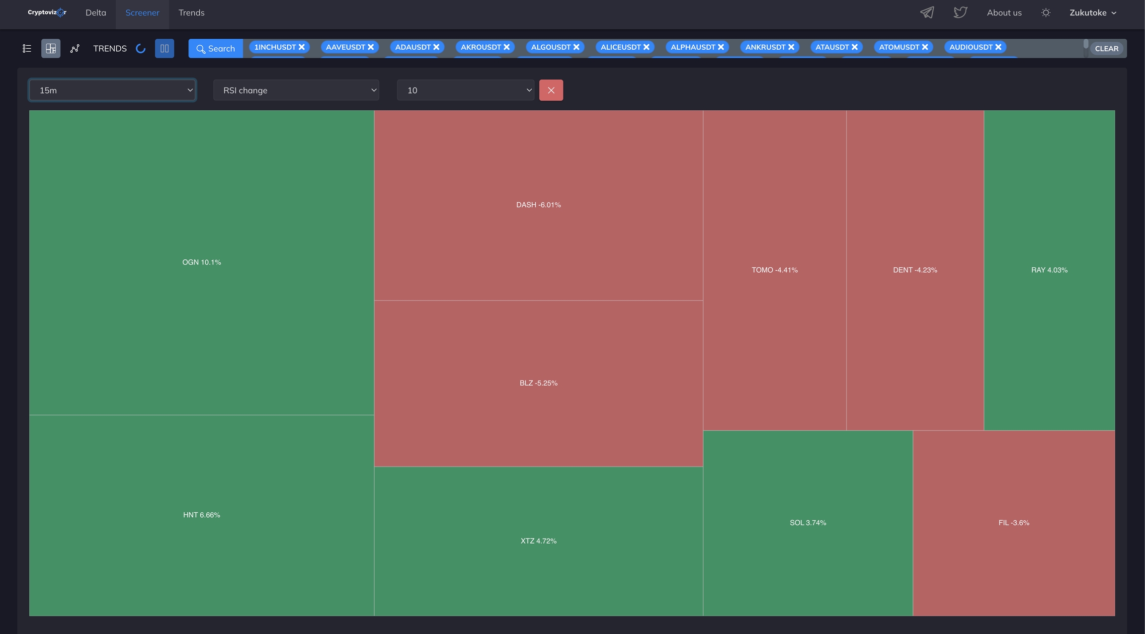 RSI change is a filter for tracking the percentage change in RSI indicator values.